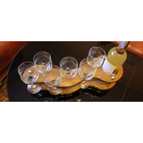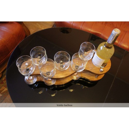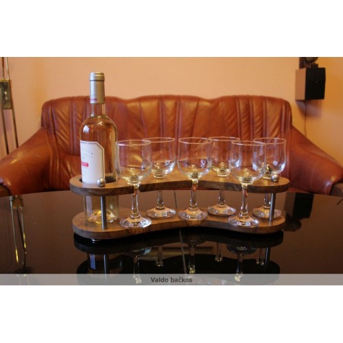 Ąžuolinis stovas vyno buteliui su taurėmis. Puiki dovana.